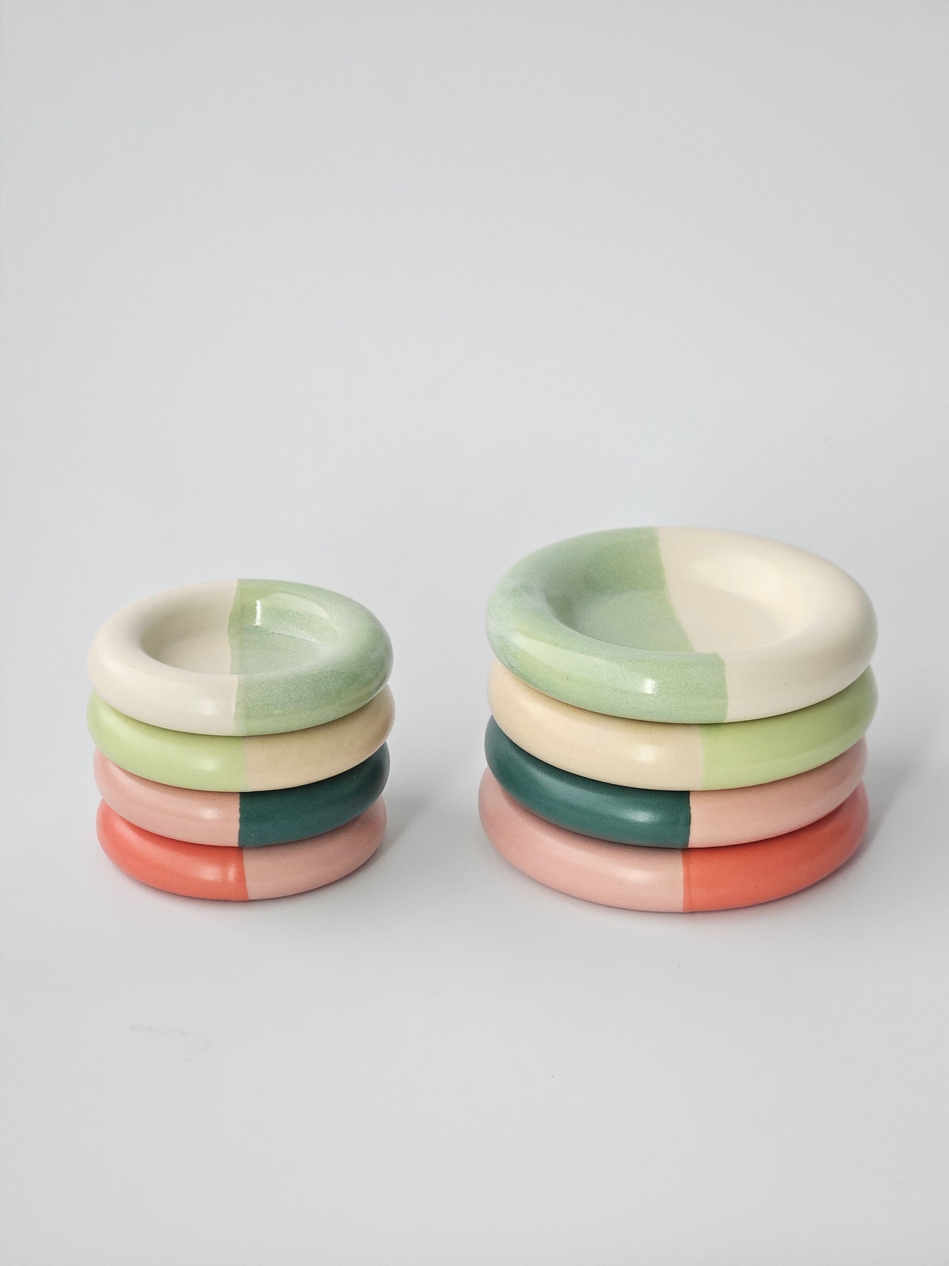 •A dish that outdoes the chunkiness of our Chunky Plate line! This Donut Dish is thrown hollow on the wheel for maximum chonk, making it a perfect holder for a tea light candle or your favorite jewelry. Also works well as a drainage tray for your favorite plant.